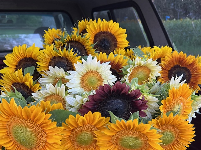 Nine Acre Farm will be at the Market this week with sunflowers in every imaginable color. They’re bringing whites, plums, reds, golds and of course the standard Sunflowers…🌻
