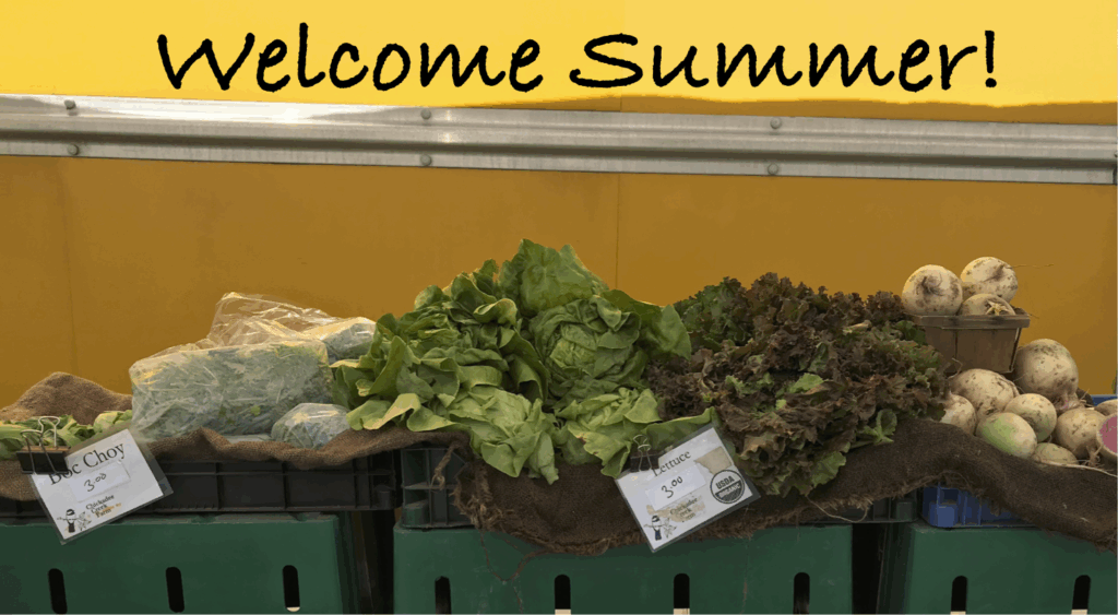 We mark the Summer Solstice tomorrow with real summer weather (finally!) so stop by the Information tent (on the left as you enter) for some ice water if you’re getting over heated. Also at the table, you’ll find free copies of Edible Jersey.