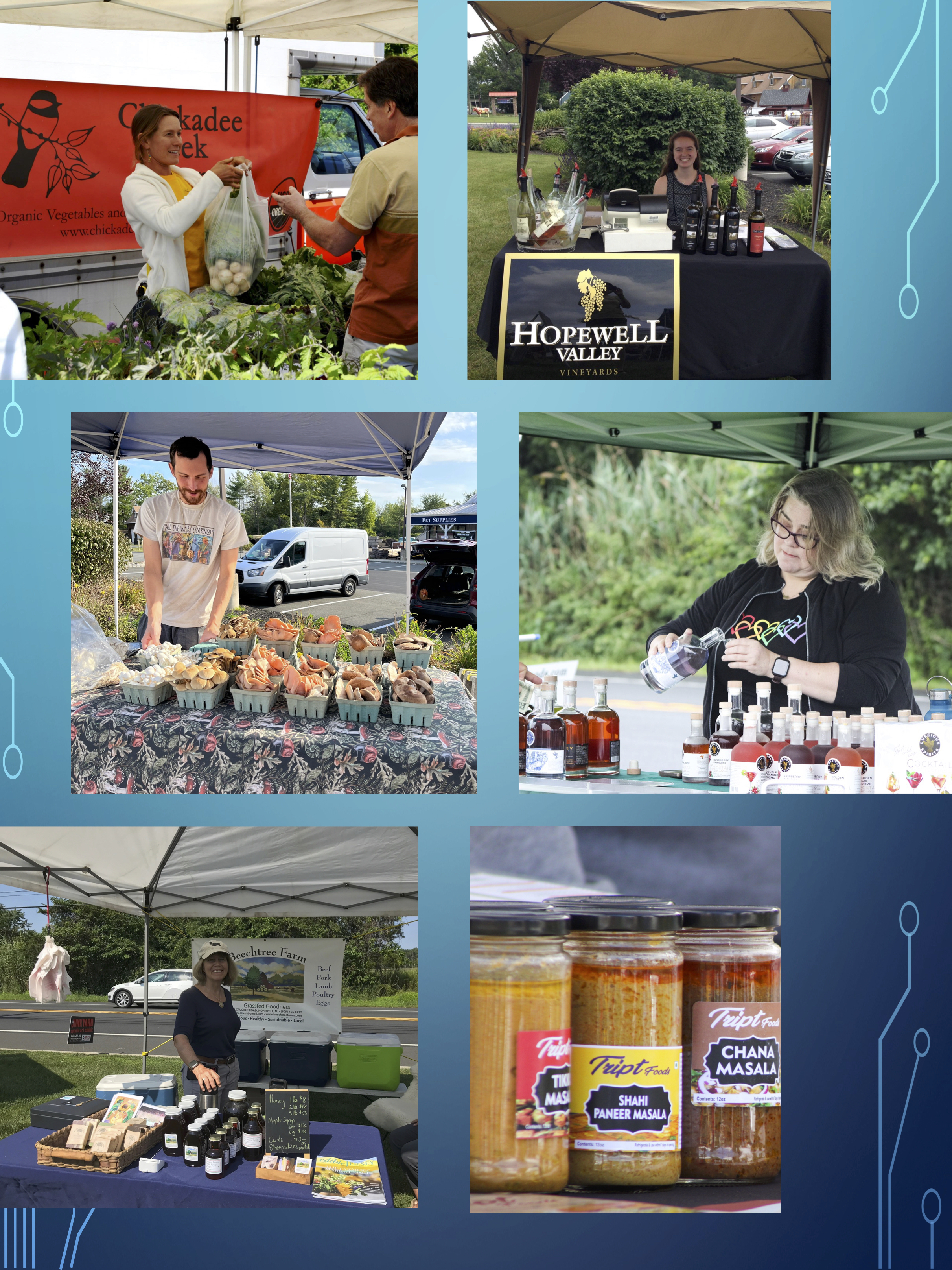 We want to take a moment to give a shout out to our Full Season Vendors! They are a steady presence week after week, with products you can rely on and a spirit that helps shape our market community.  They are: Beechtree Farm, Chickadee Creek Farm, Hopewell Valley Vineyards, Luscious Spirits, Tript Foods and Wildspawn Mushrooms PLUS Sourland Bread (who joined us mid-season), Nine Acre Farm (who are full time during sunflower season), and Lee’s Honeybees (who sold out for the season, thanks to all of you). That includes 6 Local Farms!! We are so grateful to them for their years and years of participation.